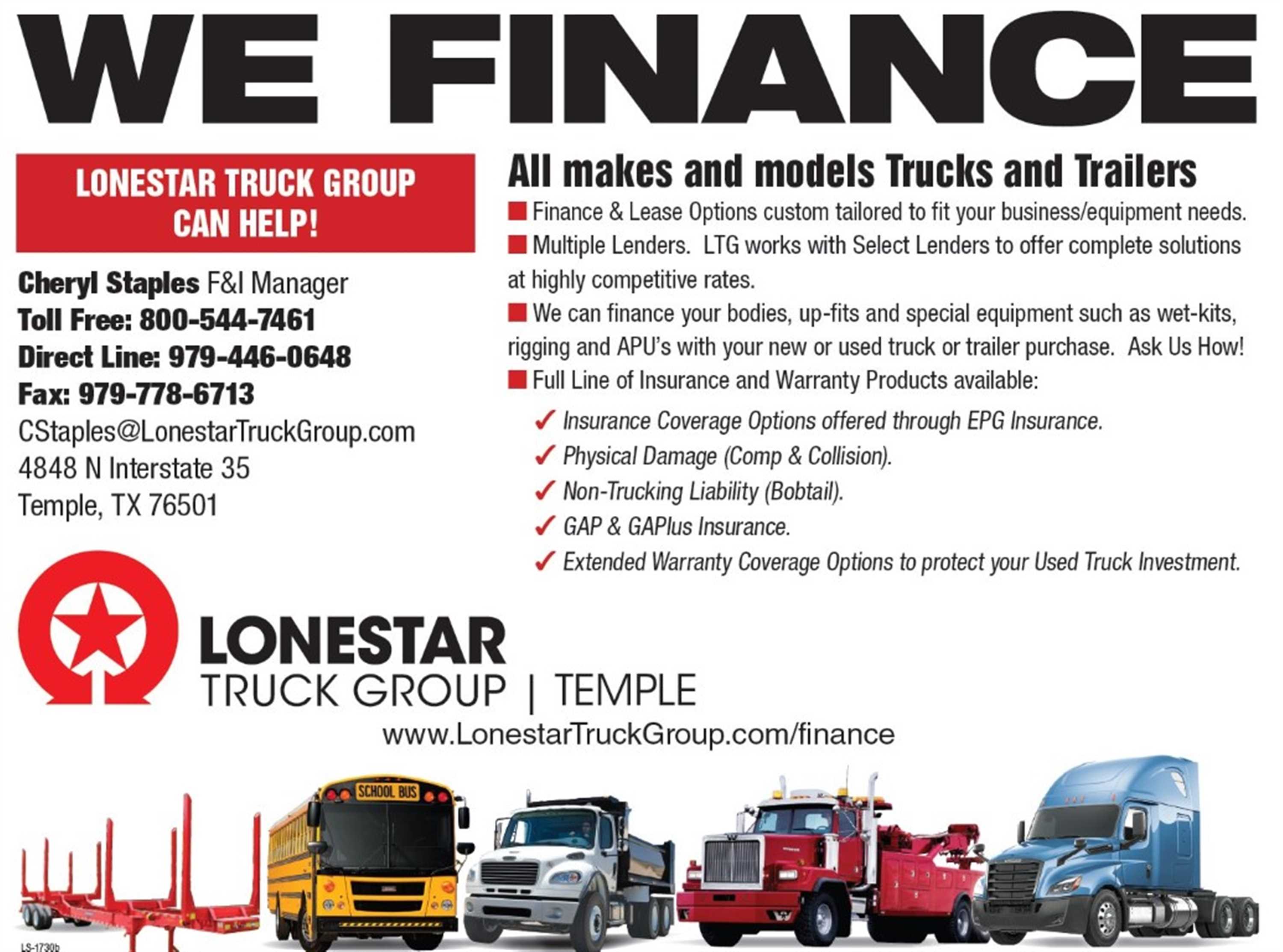 Freightliner Western Star trucks -- Many trailer brands -- Texas New Mexico Louisiana Arkansas Tennessee Missouri Mississippi Kentucky -- Lonestar Truck Group TAG Truck Center. See All Trucks For Sale near you By TEMPLE - LONESTAR TRUCK GROUP 4848 N General Bruce Drive Temple Texas 76501. LONESTAR TRUCK GROUP TEMPLE at TEMPLE TX is ready to serve you.