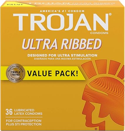 Trojan Condom Stimulations Ultra Ribbed Spermicidal 12 Count Amazon Ca Health Personal Care
